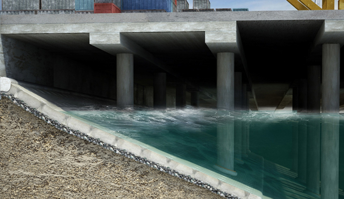 - Quay Wall 구조물의 높이를 줄여 공사비 절감
